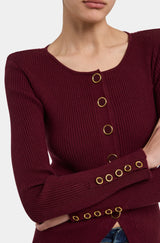 The Cherish Cardigan is all about sleek simplicity. This collarless, ribbed knit design features a flattering cutaway hem and glossy gold-rimmed buttons that elevate its clean silhouette. The slim fit hugs the body just right, making it perfect for layering or wearing solo. Polished and effortless, this black cardigan is a timeless essential with a modern edge.