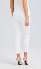 These stretch crepe pants, defined by their pintuck detailing and pure white hue, are designed to flatter. With a silhouette that balances chic and sophisticated, they stand out as an essential piece for the spring season.