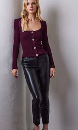 Edge meets elegance in the Tula Vegan Leather Pants. These high-rise, fitted pants are crafted from buttery-soft vegan leather with pin-tuck detailing for a flattering, lengthening effect. Finished with a sleek ankle-length cut, they’re your go-to for city nights, date looks, or a polished twist on everyday wear.