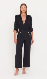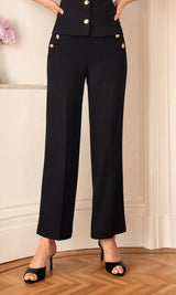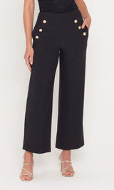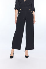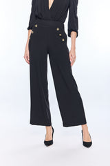 Elevate your everyday style with the Medlyn Lightweight Crepe Pants. Featuring a wide-leg silhouette, soft drape, and signature gold buttons at the waist, these black pants bring effortless polish to any look. Perfect with the matching Lehti Bodysuit or styled with your favorite tops.