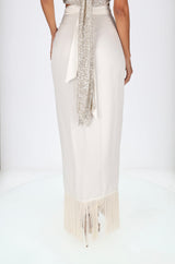 Experience effortless style with the Geraldine Garcia - Jessie Set. This versatile and chic set features a crop bandeau top and fringe detail skirt, perfect for dressing up or down.