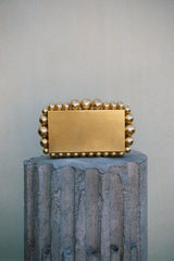 The signature marbled acrylic box shaped clutch with coordinating acrylic beads surrounding the edges.