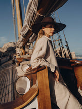 Made with 100% toquilla straw and hand-woven in Ecuador, this hat features PETITS BORDS and a CHAINE PLAQUÉ OR for a touch of luxury. With its lightweight and comfortable design, this customized hat is perfect for any occasion. Don't miss out on this unique and elegant addition to your wardrobe.