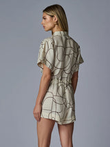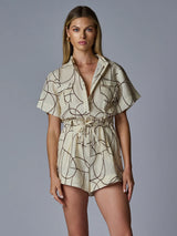 Hevron - Taryn Linen Romper - Brown Geo Print