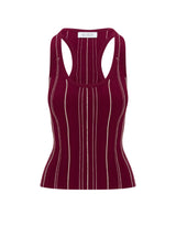 Designed in our soft viscose knit with a cotton crochet accent, the Violet Knit racerback tank offers a form-fitting silhouette. Trimmed in solid ivory, the scoop neckline completes the look.