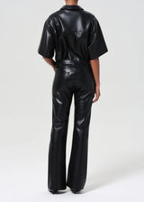 The Recycled Leather Kick Boot offers a refined edge with a mid-rise, subtly flared silhouette. Crafted from supple recycled leather with a matte finish and slight stretch. Pair with a crisp button-down or oversized knit for contrast.