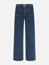 FRAME's best-selling palazzo silhouette, now with chic front pocket details. This pair has the same flattering high rise, fitted hip, and subtle wide-leg flare that hits at the floor. Crafted from a sustainable, ultra stretch cotton blend for soft and comfortable wear.
