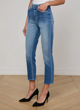 More relaxed than the iconic skinny jean, yet slimmer than the straight leg. The Celestia offers a sleek, flattering fit in an aged medium wash.
