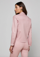 The iconic L’AGENCE jacket, constructed with a slim fit and angled seams for flattering waist definition. This all-time bestseller is now updated in our light pink leather alternative coated denim.