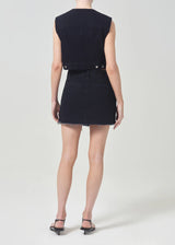Cut in our signature organic cotton, this collarless vest is features a close, cropped fit with all the traditional denim jacket detailing. Style the Leo back to tonal denim or wear open over an easy tank.