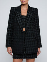 The Cambrie blazer brings a powerful presence with its oversized shape and sharp detailing. Rendered in tonal black houndstooth, it feels both bold and versatile. Style with its coordinating separates for a cohesive look, or layer over a slip dress to strike the perfect balance of edge and elegance.
