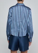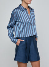 L'agence - Cosette Crop Shirt - Blue Multi Stripe