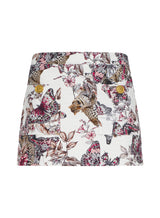 Mini in length, maximalist in style. Designed with a wearable low rise that securely hugs the hips, the Cyra is back in our modern butterfly print. Pair it with a silk blouse or an oversized white tee.