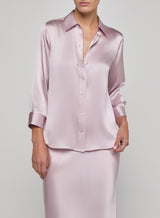 The iconic silk button-down that belongs in every wardrobe. This all-time bestseller is constructed with three-quarter length sleeves designed to perfectly showcase your jewelry—no sleeve rolling required. Our signature Dani blouse is back in a pastel lilac.