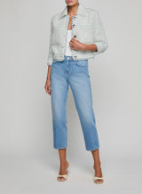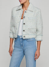 A ladylike jacket reworked with modern edge, the Jia is back for the season in a chevron tweed with micro sequin accents and fringed trim. The mix of classic tweed and raw detailing gives this piece a fashion-forward feel while a fully lined interior makes it perfect for wearing on its own as a top or as a second layer.