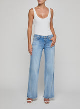 The Joanne features a classic wide-leg fit with a thoughtfully designed, wearable low-rise. Now back in our heritage light wash.