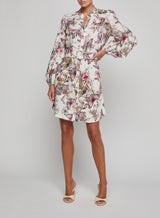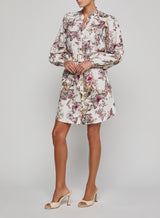 The Kiersten brings bold energy to daytime dressing. Crafted from a breathable linen blend, it features a vibrant print, puffed long sleeves, and matching belt. Feminine with a strong point of view, it’s designed to be noticed without trying too hard.