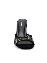 Our bestselling sculpted stiletto mule is back, now reimagined in delicate black lace. With a sleek silhouette and open-toe design, this chic sandal adds a touch of elegance to everything from evening dresses to tailored trousers.