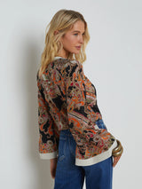 A dramatic bell sleeve turns this classic tie-front blouse into a fabulous statement.