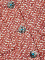 A ladylike, three-quarter sleeve jacket meets a textured chevron tweed. Wear the Jia as a top or second layer.