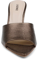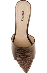 Our signature peep-toe mule, updated in Bronze Lizard