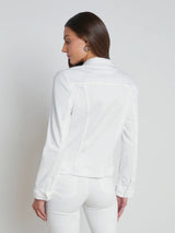 Your new essential jean jacket is here. The slightly oversized fit makes Shuri the perfect throw-on-and-go layer. White denim adds a refined touch and angled pockets accentuate the waist. Pair with a pretty dress and sneakers for fresh spring style.