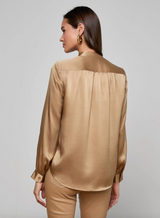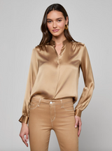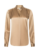 Defined by impeccable craftsmanship, soft gathers, and a relaxed silhouette, the Bianca is a timeless silk blouse that belongs in every wardrobe. Now in a neutral tan.