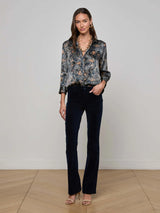 Meet the iconic silk button-down that belongs in every wardrobe. Our signature three-quarter sleeve shirt is back in a Midnight Multi Etched Paisley