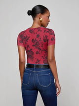 Fitted & flattering, the Ressi tee is an all-time L’AGENCE favorite. Reimagined in new colors and prints every season, this short sleeve essential is now back in a burgundy floral print.