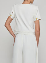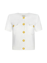 Elevated and oh-so-chic, the Nawa shirt jacket brings a refined ease to everyday dressing. Designed in crisp white with a collarless silhouette, it exudes polished sophistication. Short sleeves and a tailored shape finish this timeless yet fresh style.