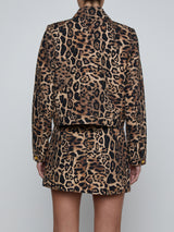 An essential layer in a striking leopard print. A cool, relaxed fit makes the Nyx jacket an easy essential with personality. Wear it with your favorite jeans and tee or pair it with the matching mini skirt for maximum impact.