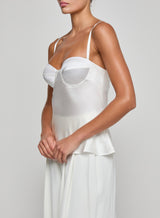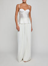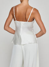 This style debuted in our Spring 2026 NYFW presentation, After Hours. The evolution of our signature silk camisole, thoughtfully constructed with underwire cups to shape and support the figure—and eliminate the question of what to wear underneath. The Orlina is an all-season essential in true white.