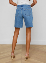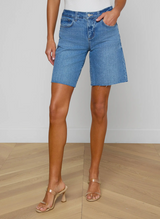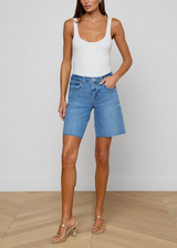 Cool and easy, the River short is here for all your warm weather plans. Designed to hug the hip before releasing into a slim leg, this denim Bermuda short will be your new go-to for vacation to off-duty style. Now in a classic blue wash.