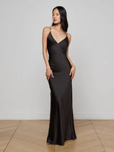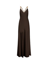 The Saint dress delivers sophistication with a high-impact finish. Now crafted in dark brown satin, it skims the body in a softly flared silhouette. Crystal straps crisscross at the back, adding glamour to the minimalist design. With its deep neckline and dramatic open back, the Saint is perfect for your next event.
