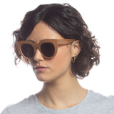 A favourite of Meghan Markle and Olivia Palermo, the Air Heart silhouette is an iconic Le Specs style. With oversized and dramatic proportions reminiscent of a cat eye, the style is designed with a thick caramel frame and luxurious metal top bar inlay, then fitted with premium zero base khaki grad flat lenses.