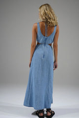 Remember me? The Lorelei is back for summer in a new chambray fabric. An a-lined maxi with side cutouts in the front and back.