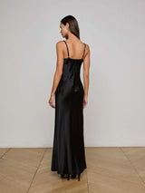 The Sayla silk gown melds vintage glamour and modern sophistication. Constructed with molded cups secured by a traditional hook and eye closure, this event-ready style offers a secure, supportive fit. Now in timeless black.