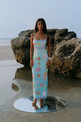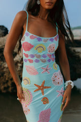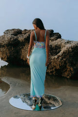 A modern reinterpretation of our bestselling New York style, the New York Strapped Dress in Blue captures Oceanus’s commitment to artistry and oceanic elegance. Crafted from premium blue Lycra, this dress embraces the hues of twilight seas and starry nights. Its strappy square neckline frames the décolletage with contemporary sophistication, while the bust dazzles with an explosion of hand-embroidered sea life motifs in vibrant, crystalline beading. Each bead is placed with devotion, capturing the magic of seashells, starfish, and coral dancing beneath moonlit waves. The maxi length adds a sense of drama and flow, ensuring every entrance feels like a grand reveal.