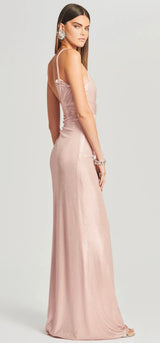 Embrace your inner goddess in our Yesi Dress! Crafted in lustrous lamé, this silhouette features ruched panels on the bodice and a maxi-length skirt. Barely-there straps and a thigh-high side slit provide the silhouette with a seductively feminine feel. The style is finished with an invisible side zip closure. Shown here in Dusty Pink.