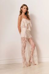 Make a statement in the Sigrid Pant. These Bohemian-inspired wide-leg palazzo pants are feminine and effortlessly cool with vintage-inspired lace all over. Slightly sheer, the fashion-forward bottoms feature little boy shorts designed from a chiffon fabric. These are finished with a zipper.