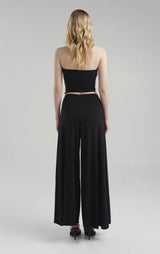 Wide-leg pants with a high-cut silhouette. Includes high-waisted underwear that stylizes the figure.