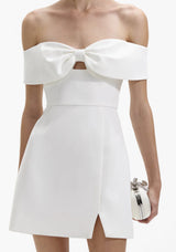 Cut from crepe for its fluid feel, this dress marries a modern silhouette with feminine accents. A sweet bow neckline spotlights the décolletage, falling to a leg-lengthening notched hem.