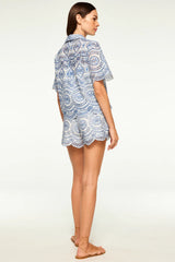 Belen is a feminine short cut from our blue embroidered eyelet cotton. Featuring a covered elastic waist and double side slit pockets with a lovely scalloped hem detail. Fully lined. Pair with the coordinating Magda top for a sweet set.