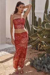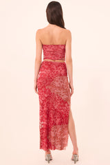 Verna is a chic and effortless tube top cut from patchwork lace stretch mesh in varying shades of red and rose. Designed in a bodycon silhouette, it’s double lined and features allover ruching for a flattering, comfortable fit. Pair with the coordinating Alaya skirt for a head-turning matching set.