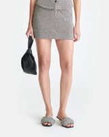 The Sammy mini skirt is made from cotton with looped black and creme threads – a new fabric technique to celebrate our 20th anniversary as a brand. It has a flattering ruched waist with strings to enhance the effect.