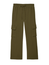 Finally, chic sweatpants. Elastic waistband with a tie front, shirring details, cargo, back patch, and side pockets.