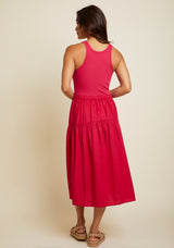 Made from super soft organic cotton, the top flatters with a smooth, simple racerback while the poplin midi skirt adds a little something extra with tiers, pockets and a drawstring waist. Like a two piece set with the ease of an all in one.
