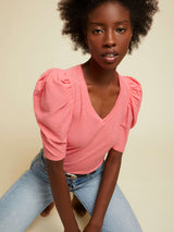 A fresh take on the classic tee, with puffed statement sleeves and a flattering V neck. Go ahead, exude femininity.