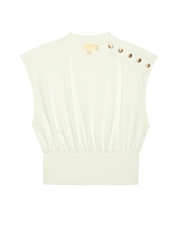 A little business, a little casual. This one features a crew neckline, signature gold snaps, and a controlled rib waist for some cinching action.