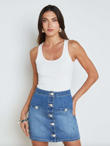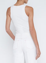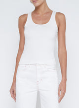 The essential white tank, perfected. Our Adira strikes an elegant modern tone with a sultry deep scoopneck and slim fit, now in the color trend of the season.